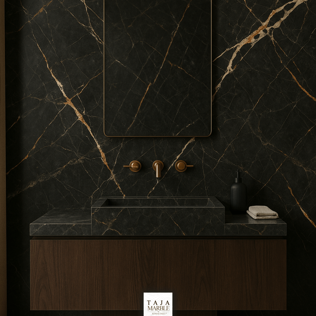 What makes this stone so attractive to architects and designers is its ability to adapt across various design languages. In ultra-modern interiors, it pairs beautifully with matte black metals, minimalist fixtures, and clean lines. In classic or transitional settings, it brings richness and depth when combined with warm woods, brass accents, and rich textiles like velvet or leather.